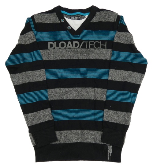 Čierno-sivo-modrý pruhovaný sveter s nápisom C&A
