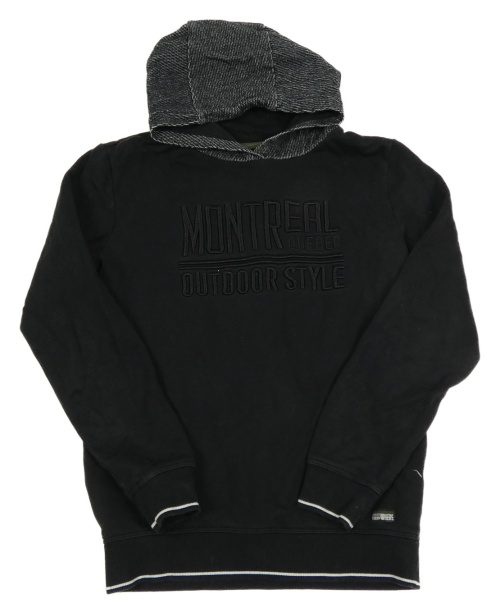 Čierna mikina s vyšitými nápisom a sivou kapucňou WE