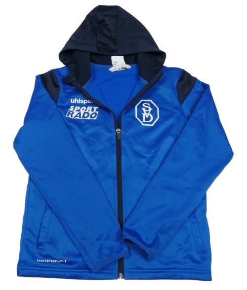 Cobaltovoě modro-tmavomodrá thermo prepínaci mikina s nápismi a kapucňou uhlsport
