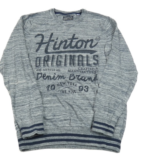 Tmavomodrý melírovaný sveter s nápisom C&A