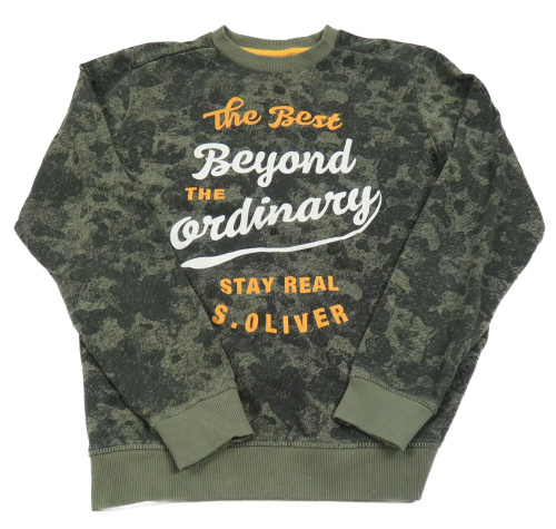 Kaki-čierna army mikina s nápismi S. Oliver