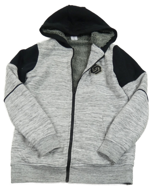 Sivo-čierna zateplená prepínaci mikina s nášivkou a kapucňou Chapter Young