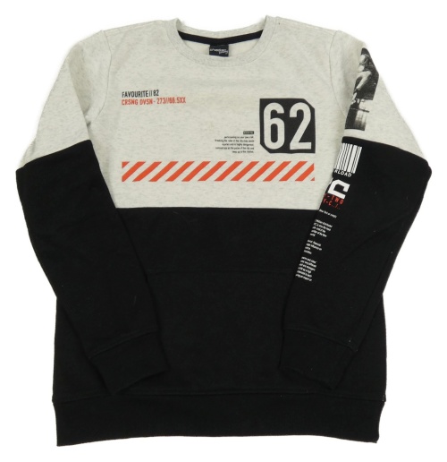 Svetlošedá -čierna melírovaná mikina s číslom a nápismi a skateboardom Chapter young