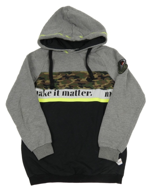Šedo-černo-army mikina s kapucňou
