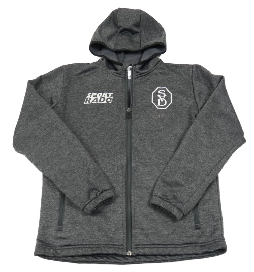Tmavosivá melírovaná športová prepínaci mikina s nápisom a kapucňou Uhlsport