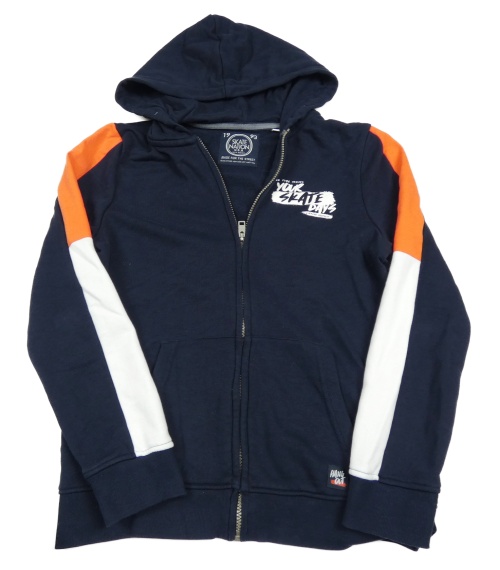 Tmavomodro-bielo-červená prepínaci mikina s kapucňou C&A