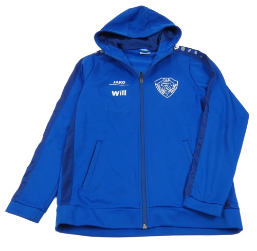 Modrá športová prepínaci mikina s potlačou a kapucňou Jako