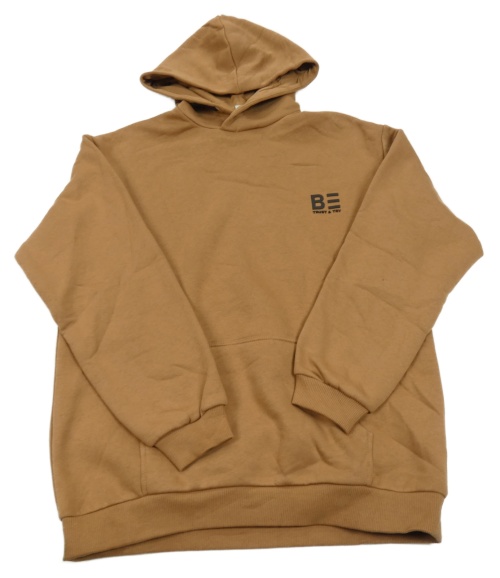 Béžová mikina s potlačou a kapucňou