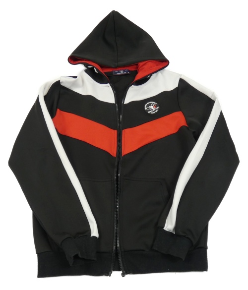 Čierno-bielo-červená športová prepínaci mikina s nášivkou a kapucňou