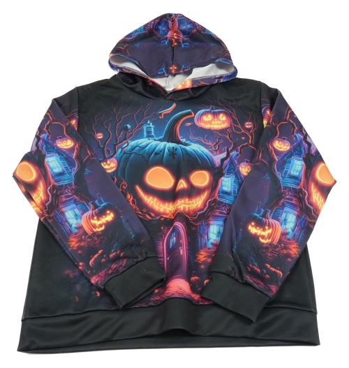Čierno-farebná mikina s dýněmi a kapucňou