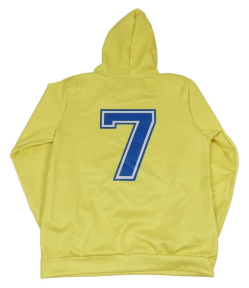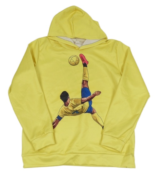 Žltá mikina s fotbalistou a kapucňou