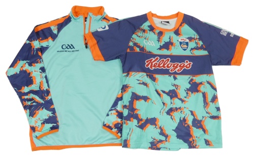 2set - Tyrkysovo-tmavomodro-neónově oranžová športová mikina so vzorem + športové tričko Masita