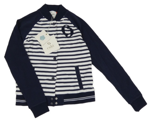 Nové - Tmavomodro-biela pruhovaná prepínaci mikina s aplikací