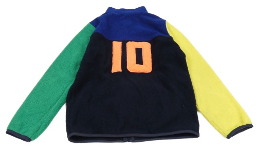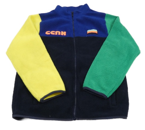 Tmavomodro-zeleno-žltá chlpatá mikina s výšivkou