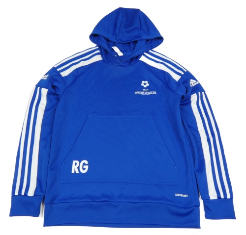 Tmavomodro-biela športová mikina s pruhmi a nápismi a kapucňou Adidas