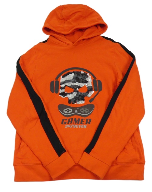 Červeno-čierna mikina s lebkou z flitrů a kapucňou Next vel.176