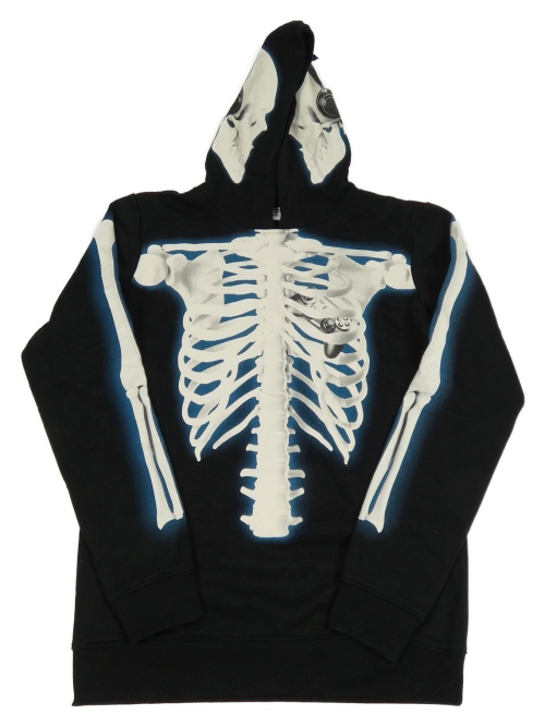 Čierno-bielo-modrá mikina s kostrou a kapucňou Chapter young
