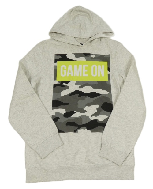 Svetlosivá melírovaná mikina s army potiskem, nápisom a kapucňou C&A vel.176