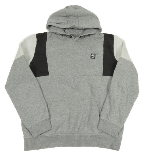 Sivo-bielo-čierna melírovaná mikina s nášivkou a vreckom a kapucňou GARCIA