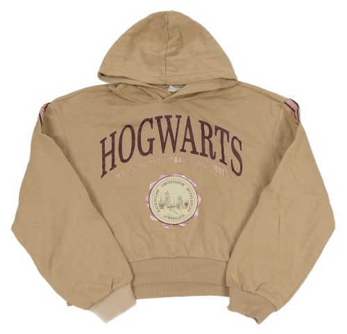 Béžová crop mikina s nápisom a kapucňou H&M