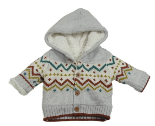 Sivo-farebný vzorovaný prepínaci zateplený sveter s kapucňou Nutmeg