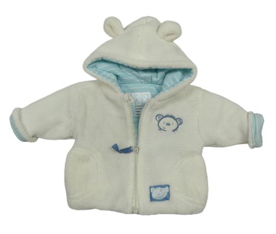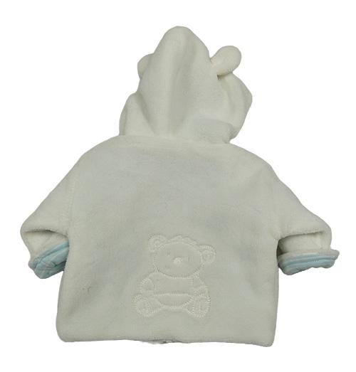 Biela chlpatá zateplená prepínaci mikina s medvěďom a kapucňou