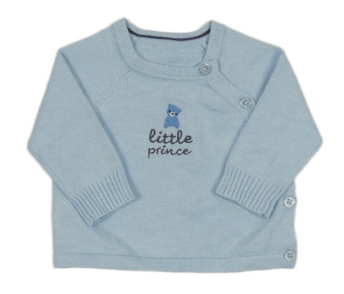 Svetlomodrý sveter s medvěďom a nápisom Nutmeg