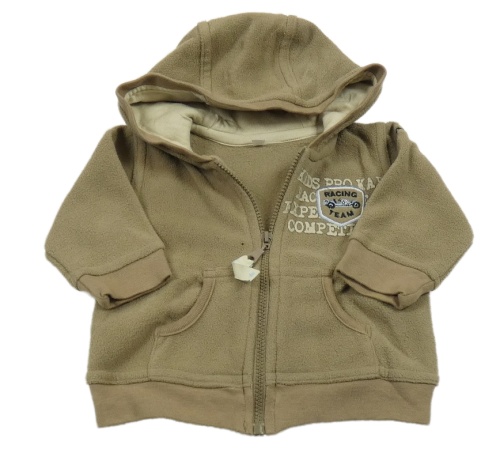 Béžová fleecová prepínaci mikina s nápisom a kapucňou