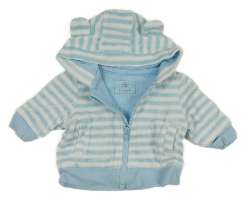 Světlemodro-biela pruhovaná zamatová prepínaci mikina s kapucňou Naturaline