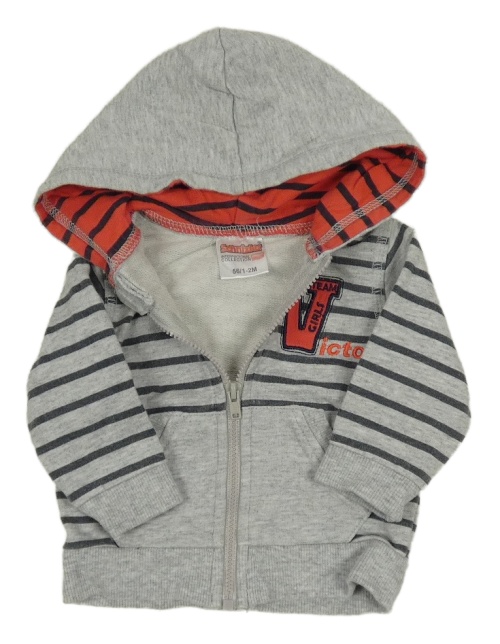Sivo-antracitová pruhovaná prepínaci mikina s písmenem a kapucňou