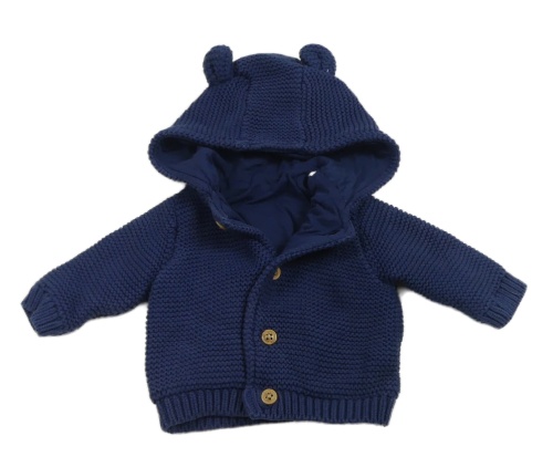 Tmavomodrý podšitý prepínaci sveter s kapucňou s uškami M&S