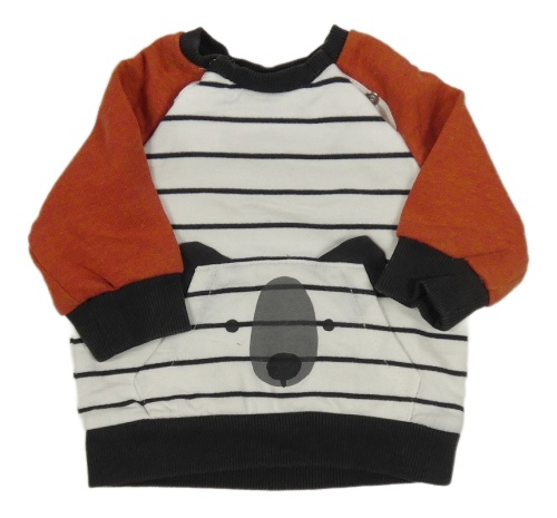 Bielo-čierno-oranžová mikina s prúžkami a medvěďom Topomini