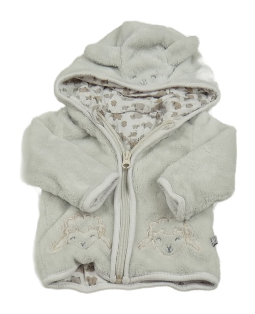 Svetlosivá chlpatá prepínaci podšitá mikina s ovečkami a ,kapucí