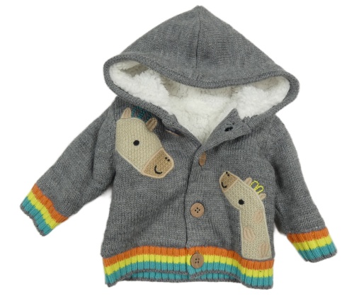 Sivý zateplený sveter s barevným lemem a žirafkami a kapucňou Nutmeg
