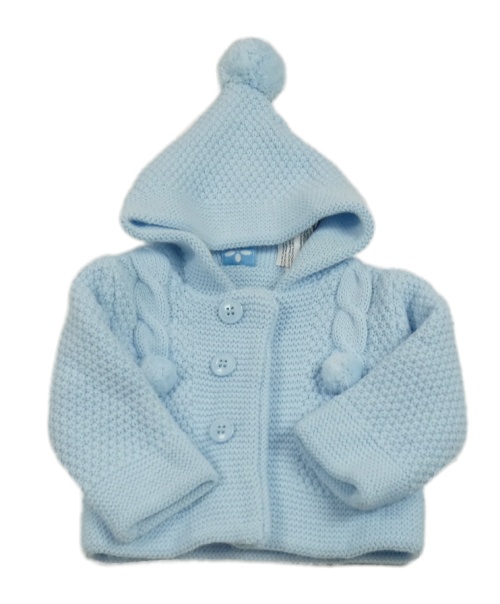 Nové - Svetlomodrý prepínaci sveter s bambulkami a kapucňou