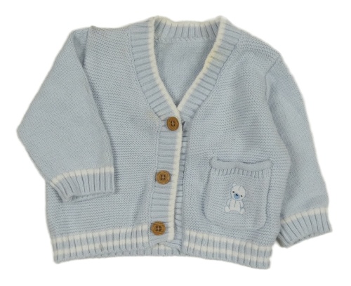 Svetlomodrý prepínaci sveter s vreckom s medvěďom Nutmeg