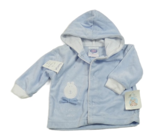 Nové - Svetlomodrá zamatová prepínaci mikina s medvěďom a kapucňou Feetje