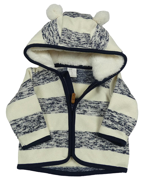 Krémovo-tmavomodrá pruhovaná pletená prepínaci mikina s kapucňou s uškami H&M