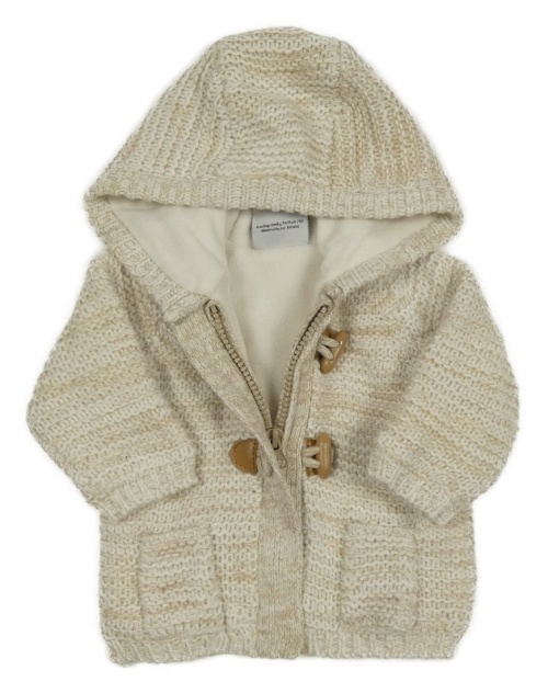 Béžovo-smotanový melírovaný pletený podšitý prepínaci sveter s kapucňou Topomini