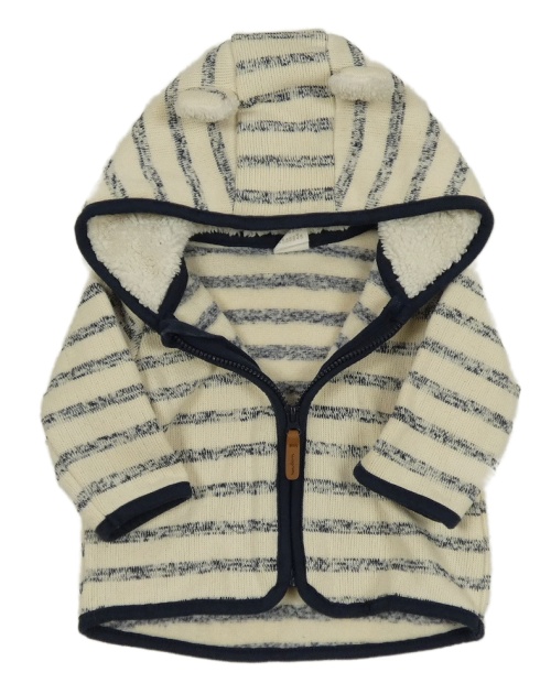 Smetanovo-tmavomodrá pruhovaná melírovaná pletená prepínaci mikina s kapucňou s uškami H&M