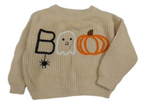 Béžový sveter s duchem a tekvicou
