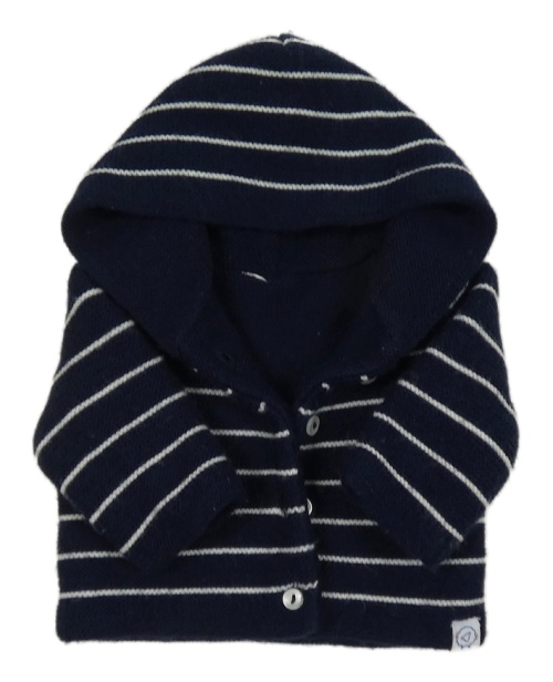 Tmavomodro-biely pruhovaný prepínaci sveter s kapucňou