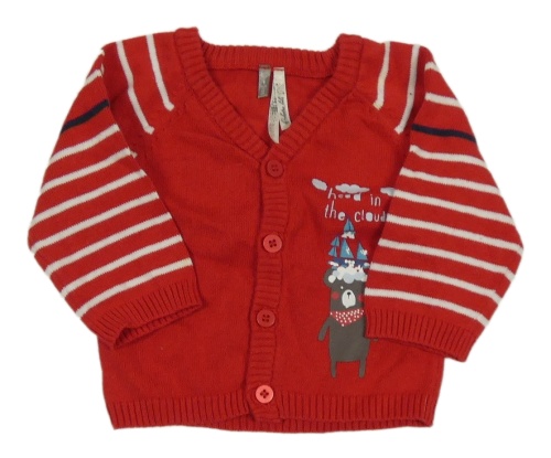 Červený prepínaci sveter s medvedíkom a prúžkami Orchestra