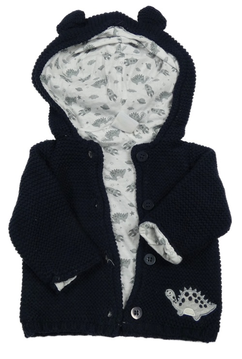 Tmavomodrý prepínaci podšitý sveter s diinosaurem a kapucňou Bubble Gum