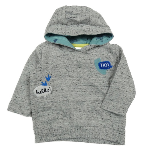 Sivá melírovaná mikina s nášivkami a kapucňou Miniclub