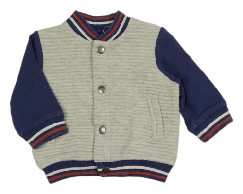 Svetlošedá -tmavomodrá melírovaná rebrovaná baseballová mikina s pruhmi Tu