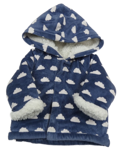Tmavomodrá zamatová zateplená prepínaci mikina s mraky a kapucňou Next