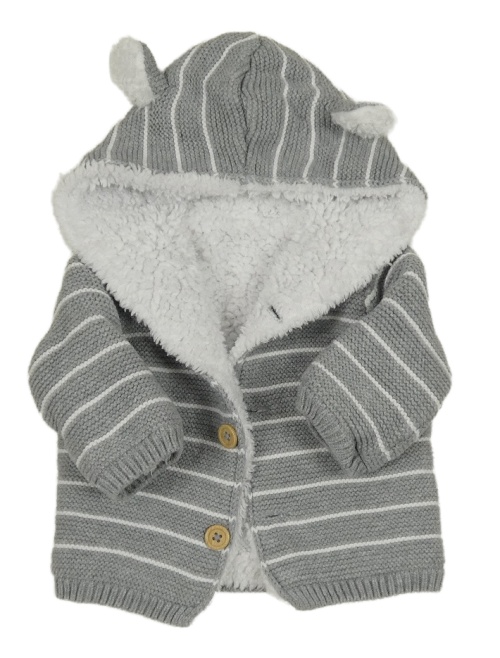 Sivo-biely pruhovaný prepínaci zateplený sveter s kapucňou s uškami Matalan
