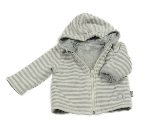 Sivo-biela pruhovaná zamatová prepínaci zateplená mikina s kapucňou