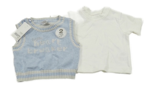 Nové - 2set - Svetlomodrá pletená vesta + tričko Next